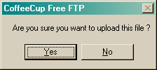 CoffeeCup requires confirmation at this stage. Click 'Yes' to confirm that you really intend to upload the file. To continue this tutorial click 'Yes' in the screenshot below.