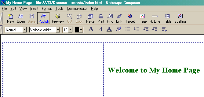 Once the page has been properly saved Composer will be ready to publish the document. The upload process may be started by clicking the 'Publish' button on the toolbar. To continue this tutorial click the 'Publish' button in the screenshot below.