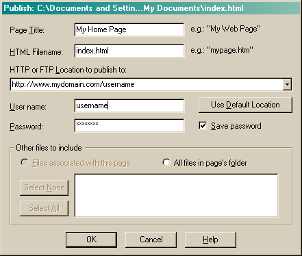 that Composer will use to publish your page. There are three